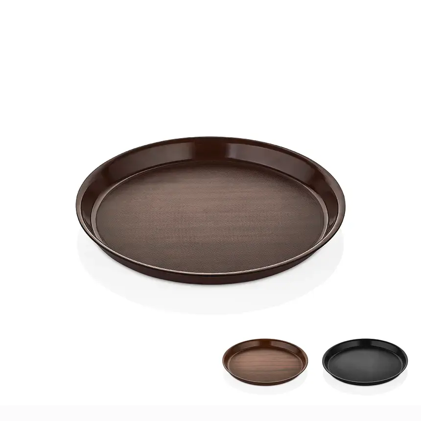36 cm Walnut/Maun/Black Non Slip Deep Round Tray
